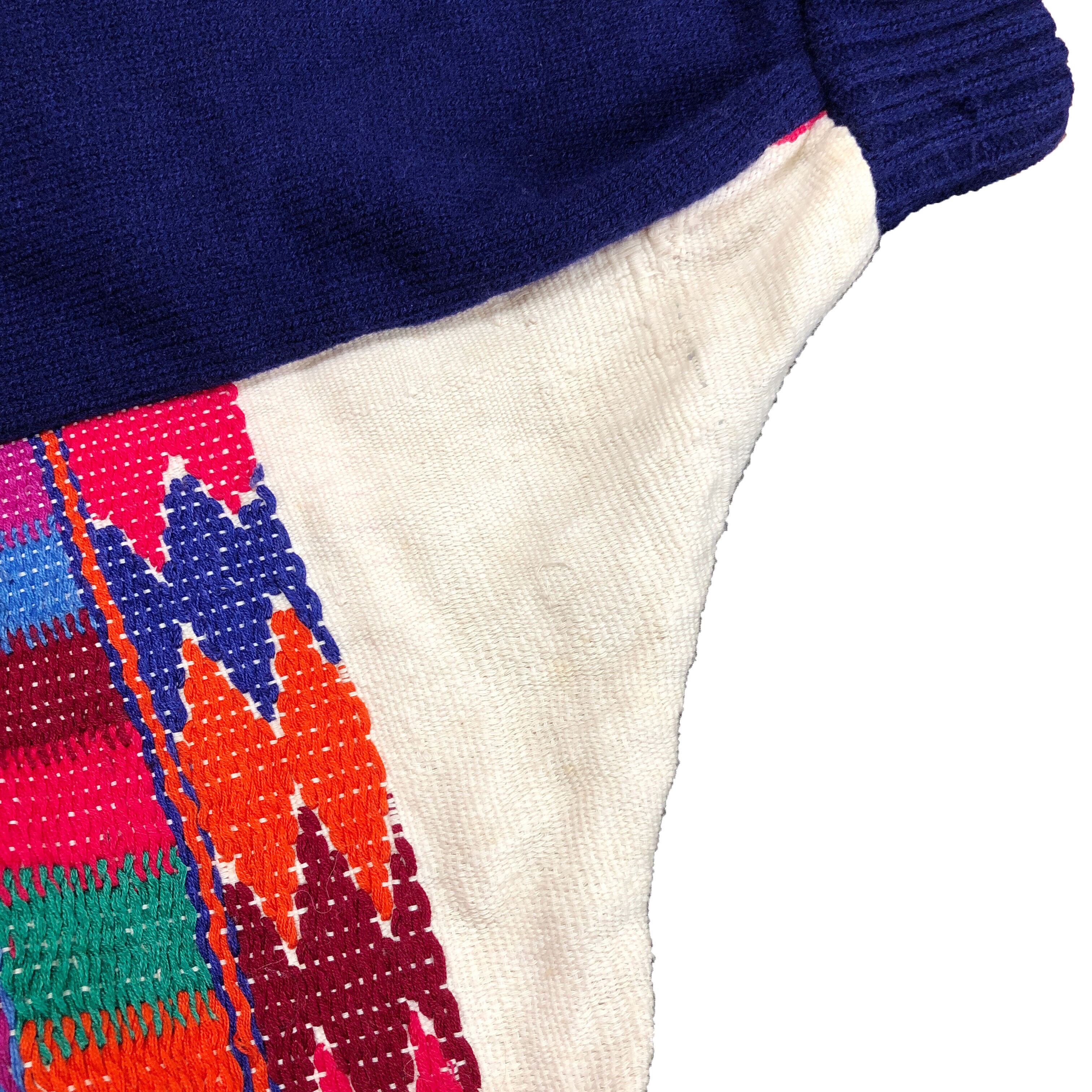 確か1950後期だったかな?グアテマラのハンドニットになります。生成りの部分は麻でリブ(紺部分)はアクリルとウールかなと思います。決して良い状態とは言えませんが、お国柄が出た一枚です。
